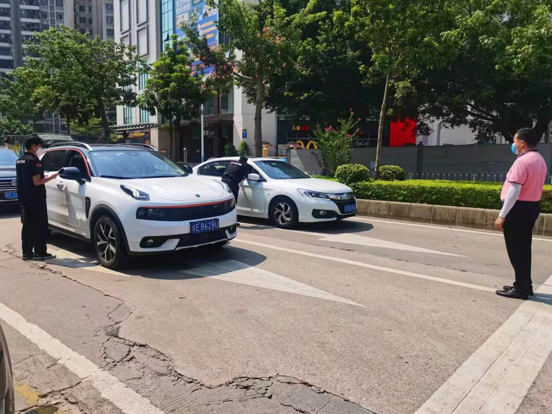 此外,保卫处还在校外学府南苑处专门设立1处防疫查点,由保卫干部带领保安员进行防疫检查工作,对符合进校防疫要求的学生车辆发放“已核验”通行卡,加快新生进校速度,有效缓解高峰期交通压力。