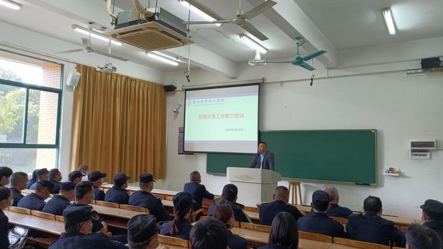 为进一步提高保卫岗位人员工作能力,2月20日下午,李伟在A4—310课室开展校园安全保卫能力培训讲座,为保卫处与保安部全体人员讲解了校园治安管理、校园疫情防控、值班执勤要求和人员着装精神面貌等内容。