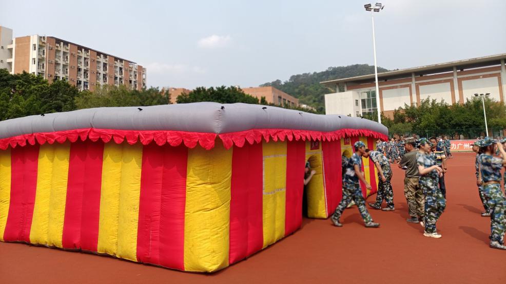 第三场区为防烟面罩使用讲解与烟热环境逃生练习。为最大程度模拟火灾现场烟热环境,保卫处联系邀请了花都区汽车城消防中队来学校搭建“烟热环境逃生体验屋”,在保证安全的前提下复刻火灾实景,增强逃生练习的效果。保卫处刘波老师向学生们讲解防烟面罩的检查和使用方法与穿戴注意事项,并让学生代表进行了防烟面罩使用练习。刘波在讲解烟热环境逃生要领时,强调要科学逃生,切实做到“捂口鼻、弯腰、低头”,他表示火灾往往伴随有浓烟,正确使用防烟面罩和科学的逃生姿势可增加火灾逃生几率。