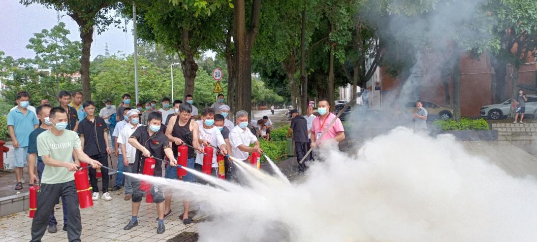 随后,黄永康讲解了消防灭火器的操作方法,并特别强调每个单位都需要配备至少一名安全员,负责消防器材日常管理和定期检查工作。在他的指导下,现场参训人员纷纷拿起手中的灭火器,并按照灭火器使用的四个标准规范“拔、握、瞄、压”,真切体验灭火实践演练。