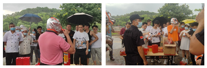 “火灾发生时会产生有害浓烟,被困人员吸入过量有害浓烟易导致缺氧、窒息、昏迷。用湿毛巾捂住口鼻、正确佩戴防烟面罩,隔离外界有害浓烟,是有效保护自身安全、增加逃生几率的关键之一。”黄永康为参训人员讲解了防烟面罩使用方法及注意事项,并强调女生使用防烟面罩时一定要裹住头发,确保防烟面罩整体密封性。知识讲解完毕后,他组织参训人员实操如何使用防烟面罩。