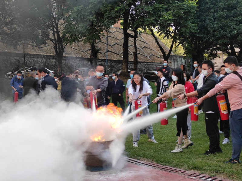 讲座结束后,参加此次培训的师生来到教师公寓篮球场上进行灭火器的实操演练。刘波就灭火器的使用方法和注意事项进行了细致的讲解和演示,指导在场的教职工进行现场操作。在安全员的协助下,整场演练,人员组织井然有序,灭火动作迅速。通过专项消防演练,师生在实地演练消防灭火的过程中,进一步提高安全责任意识,巩固了本次消防安全知识讲座成果。